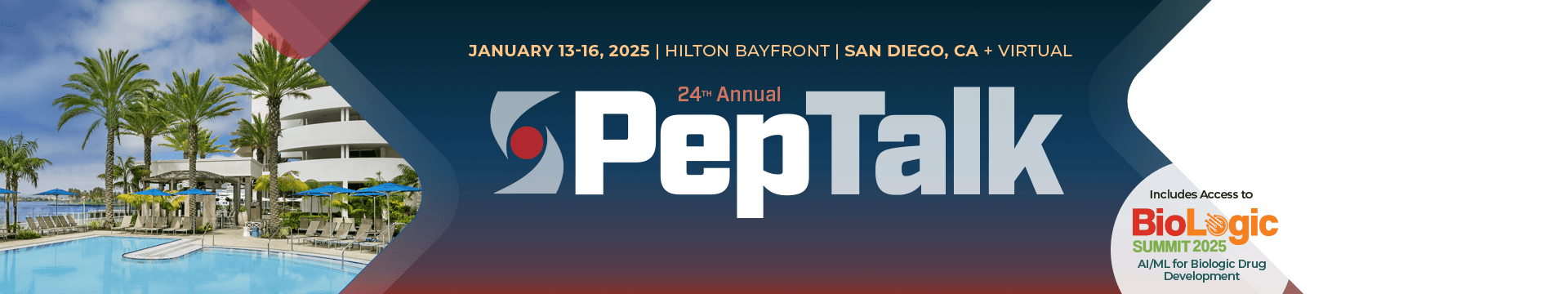 Join us at PepTalk, the premier conference dedicated to advancing biotherapeutic discovery and development. With over two decades of experience, PepTalk provides comprehensive programming and innovative solutions that bridge biotherapeutic research and practical application. Throughout the week, precise and dedicated pipelines offer symposia, conference tracks, and training seminars focused on protein expression, production platforms, lab automation for higher throughput, analytical methods including developability and characterization, antibody discovery and development, and new this year, targeted therapies and drug delivery systems. Learn from expert speakers, engage with a devoted community, and gain valuable tools to propel your research forward.